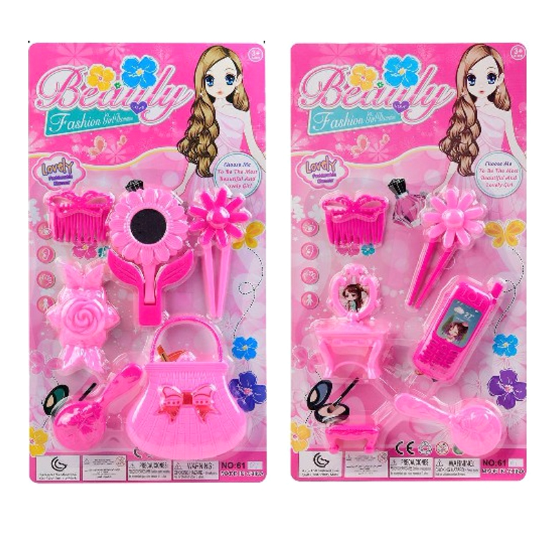Contiene un surtido conjunto de accesorios de belleza, de juguete.