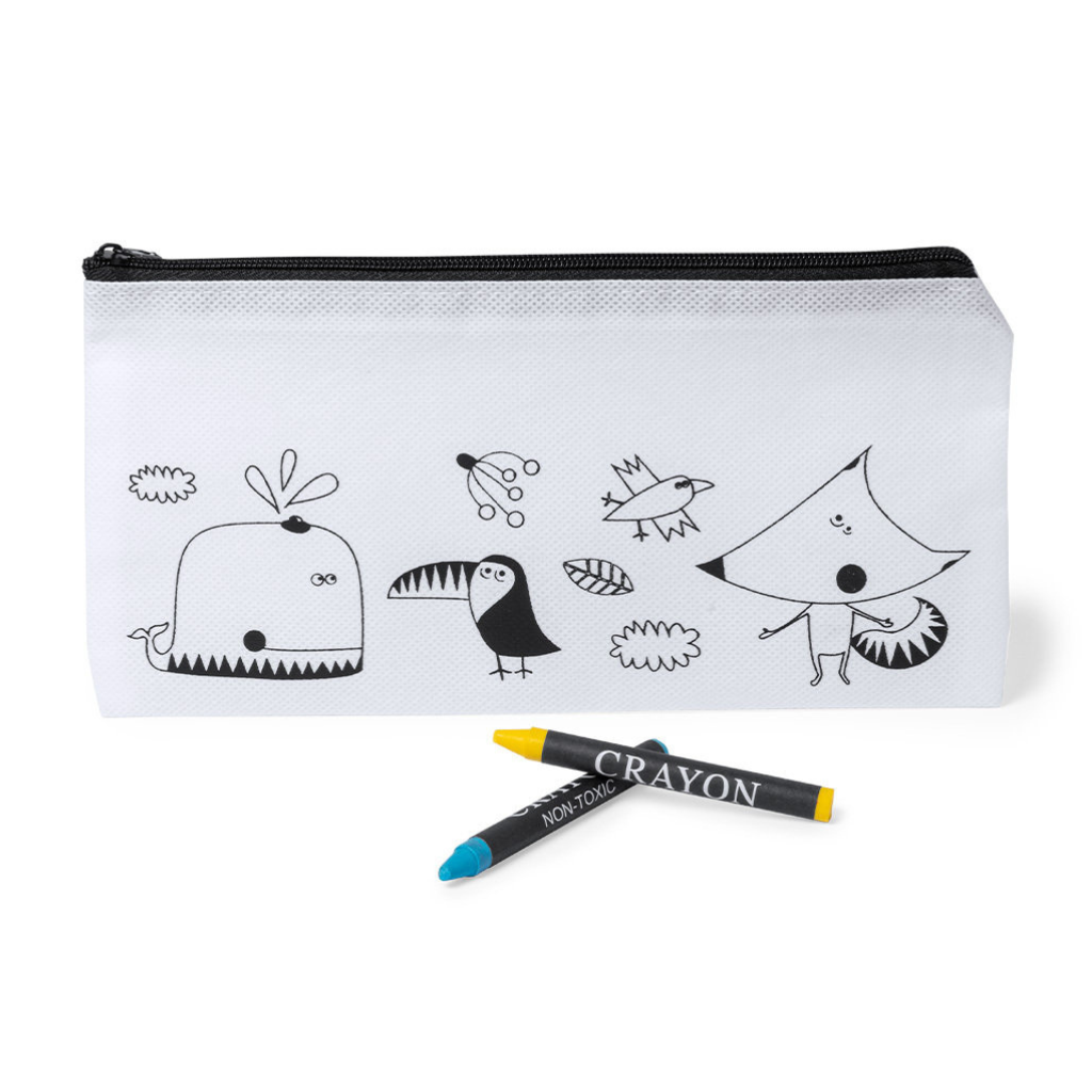 Divertido estuche con dibujo infantil especialmente diseñado para colorear. Incluye cinco ceras de colores. Elaborado con materiales no tóxicos de primera calidad.
