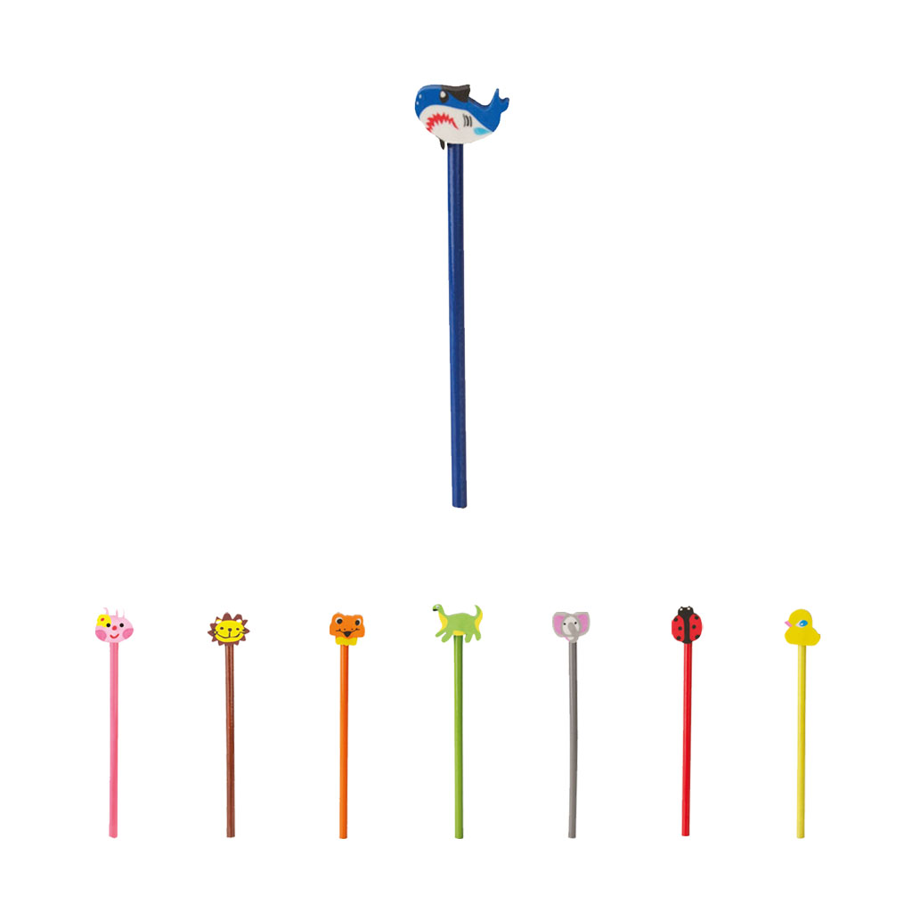 Divertido lápiz de madera con goma de borrar con formas de animalitos en el extremo. Elaborado con materiales no tóxicos de primera calidad.