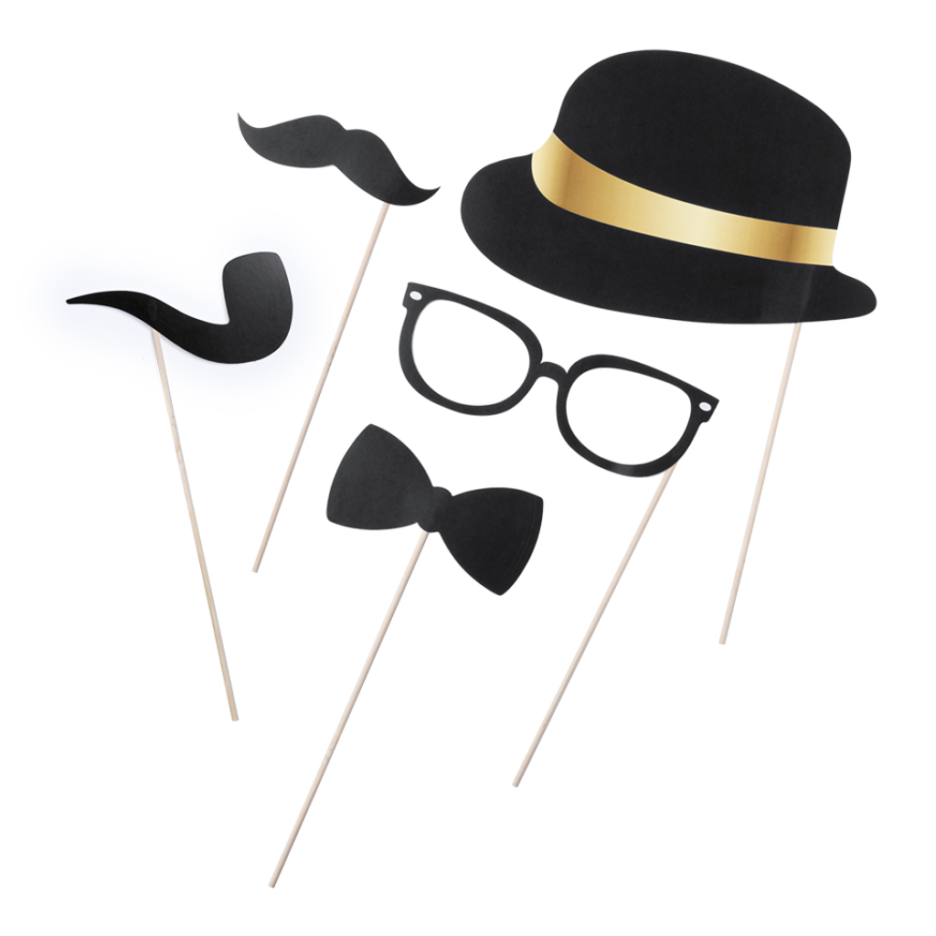 Divertido set selfie de 5 piezas (sombrero, pipa, bigote, pajarita y gafas)
